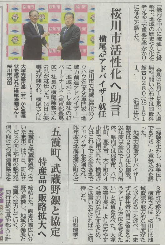 このたび、47partners代表の横尾隆義が、茨城県桜川市より「地域力創造アドバイザー」に委嘱されました。
